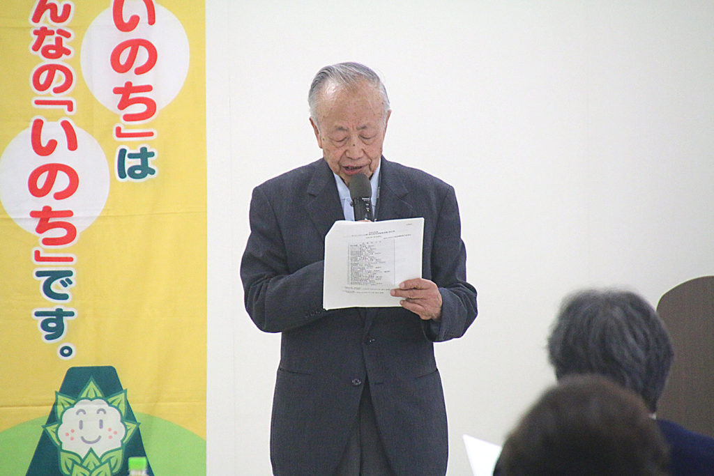 稲村茂会長の開会挨拶では、今年度も引き続き、秋田県の課題である高齢者対策に力を入れるとともに、若者や中高年の対策も進めていくことと、引き続き活動へのご理解とご協力をいただけるよう呼びかけました。