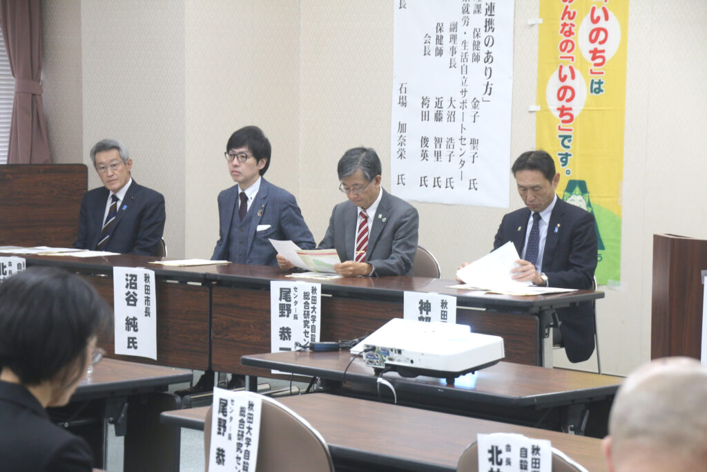 ご来賓には、秋田県副知事 神部 秀行様、秋田大学自殺予防総合研究センター長 尾野 恭一様、秋田市長 沼谷 純様、秋田県議会自殺予防対策議員連盟会長 北林 丈正様 にお越しいただき、ご挨拶を頂戴いたしました。