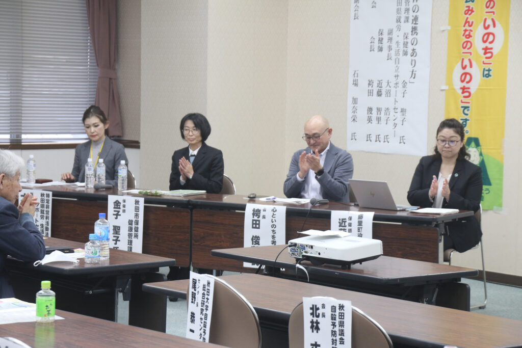 ご来賓には、秋田県副知事 神部 秀行様、秋田大学自殺予防総合研究センター センター長 尾野 恭一様、秋田市保健所 所長 伊藤 善信様、秋田県議会自殺予防対策議員連盟会長 北林 丈正様 にお越しいただき、ご挨拶を頂戴いたしました。