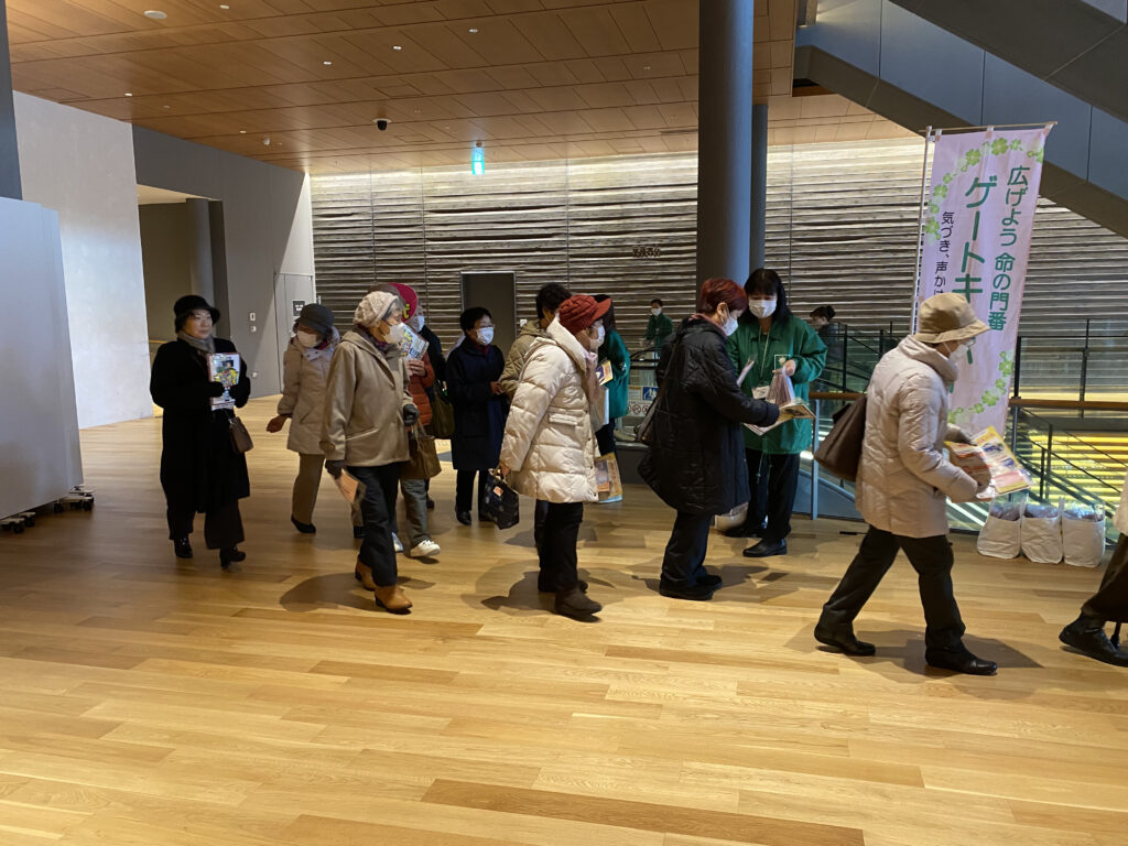 「秋田県いのちの日」(3月1日=『ミンナノイノチ』と制定)に合わせて毎年行っている3月の街頭キャンペーンを、今年は1日にJR秋田駅東西連絡自由通路<ぽぽろーど>にて実施いたしました。