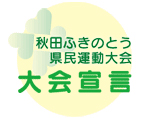 県民の誰もが、秋田に生まれ、秋田に住んでよかったと思えるよう、この大会に集う一人ひとりが、今ここから行動していくことを宣言します。